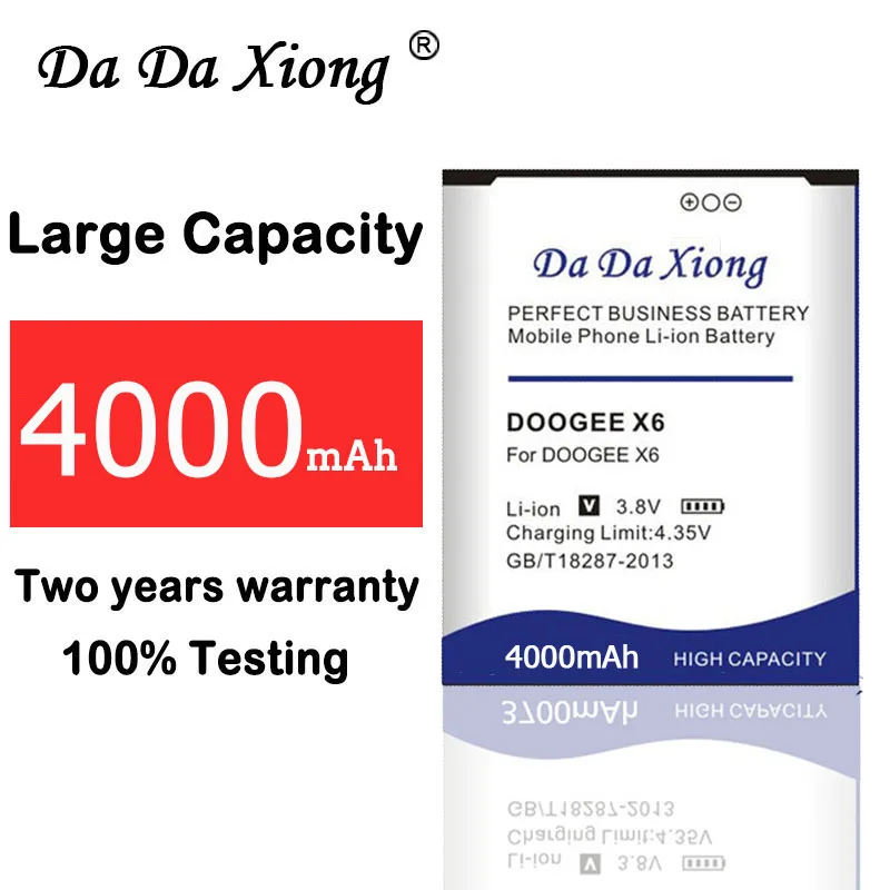 100% оригинальный новый и высококачественный аккумулятор Da Xiong. Емкость:4000MAh Напряжение: 3,8 в Тип: литий-ионный Совместимость:Для DOOGEE X6 DOOGEE x6 pro Безопасность и окружающая среда: функции двойной защиты. Двойная электрическая плата IC и PCB защищает от разряда заряда и короткого замыкания. Наша батарея такого же размера, как и оригинальная. Двухлетняя гарантияПосылка входит:
