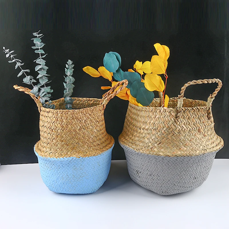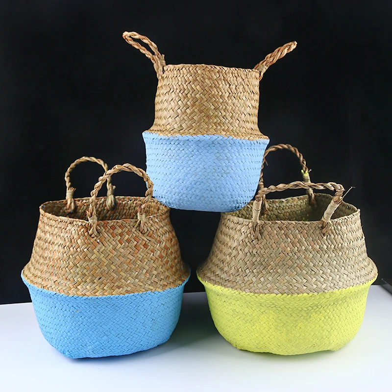 Бамбуковые корзины для хранения ручной работы, складные соломенные Лоскутные плетеные Ротанговые водоросли, живот, садовый цветочный горшок, корзина для цветов