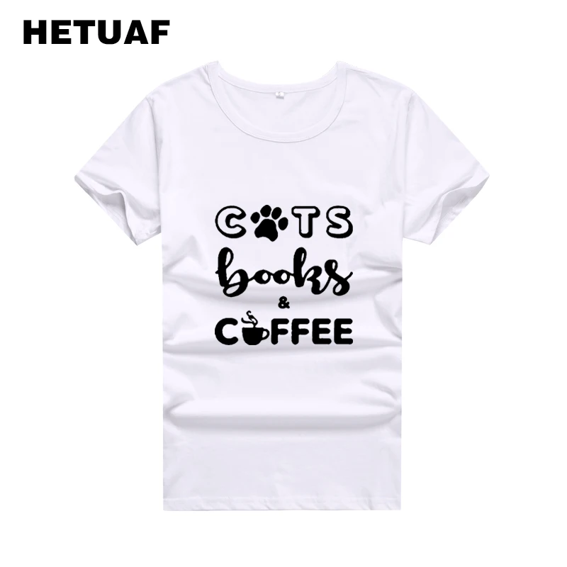 HETUAF кошки книги футболка кофейного цвета с женские след принтовые тройники, женские милые повседневные уличная Camisetas Mujer Femme