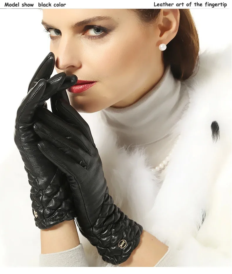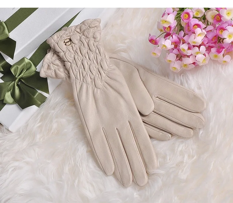 Женские перчатки на запястье, эластичные, 2020, топ, модные, козья кожа, натуральная кожа, одноцветные, овчина, перчатки, термо, зима, для вождения, бесплатная доставка