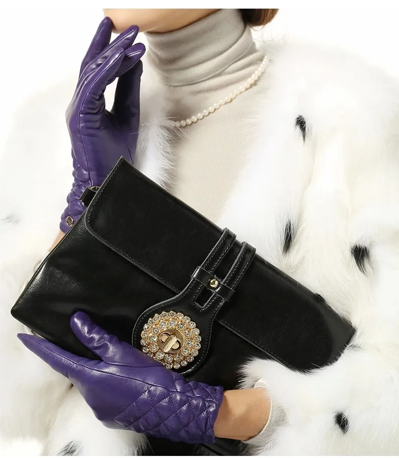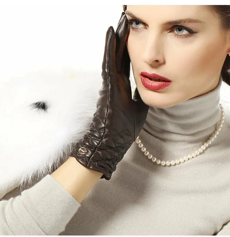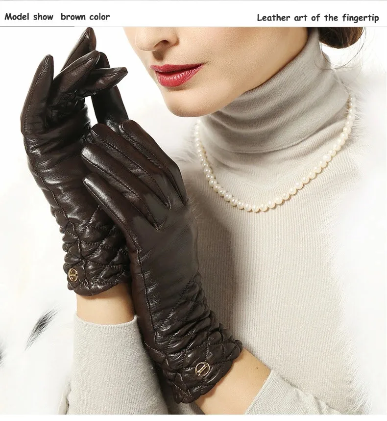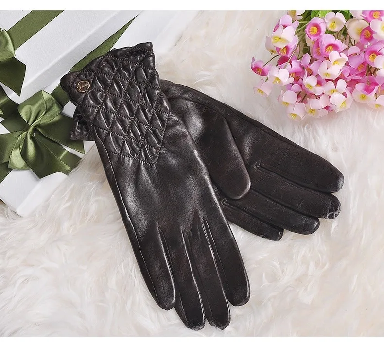 Женские перчатки на запястье, модные эластичные перчатки из козьей шкуры, из натуральной кожи, однотонные перчатки из овечьей кожи, теплые зимние для вождения, бесплатная доставка