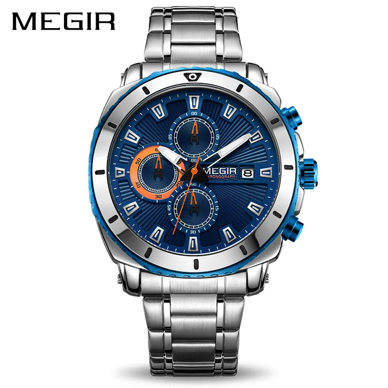 Часы MEGIR Мужские кварцевые с хронографом, деловые наручные, из нержавеющей стали, мужской роскошный бренд часов