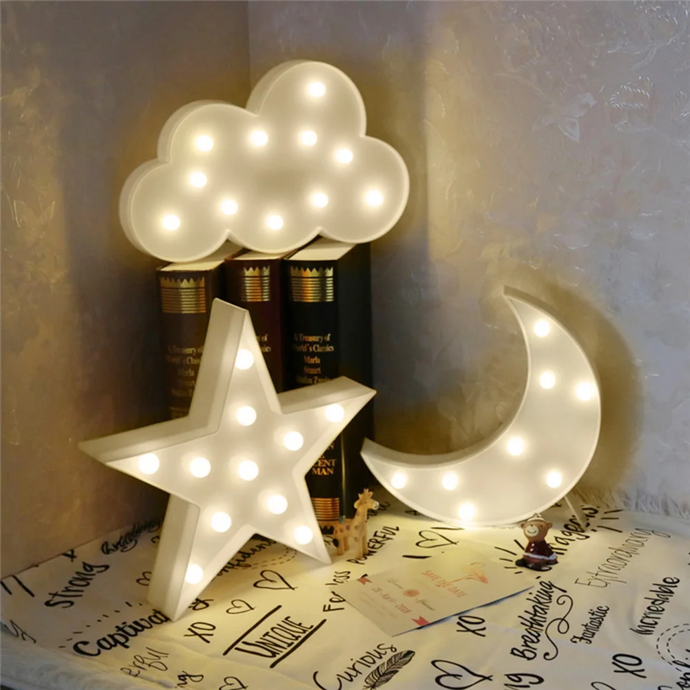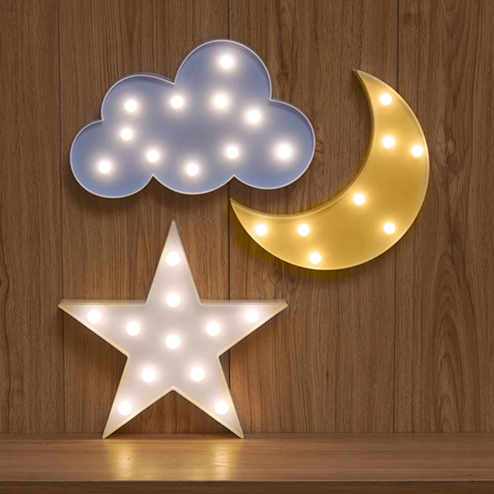 Настенные лампы, светодиодные ночные светильники белого, синего, розового цвета, с питанием от батарейки, теплый белый пластиковый шатер, знак для детской спальни, детской комнаты