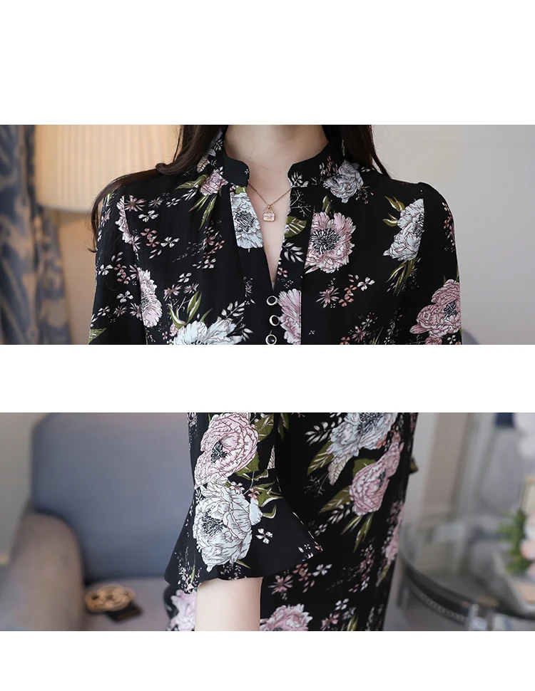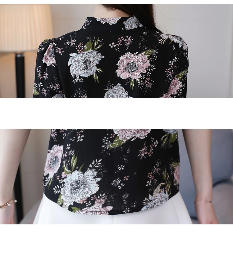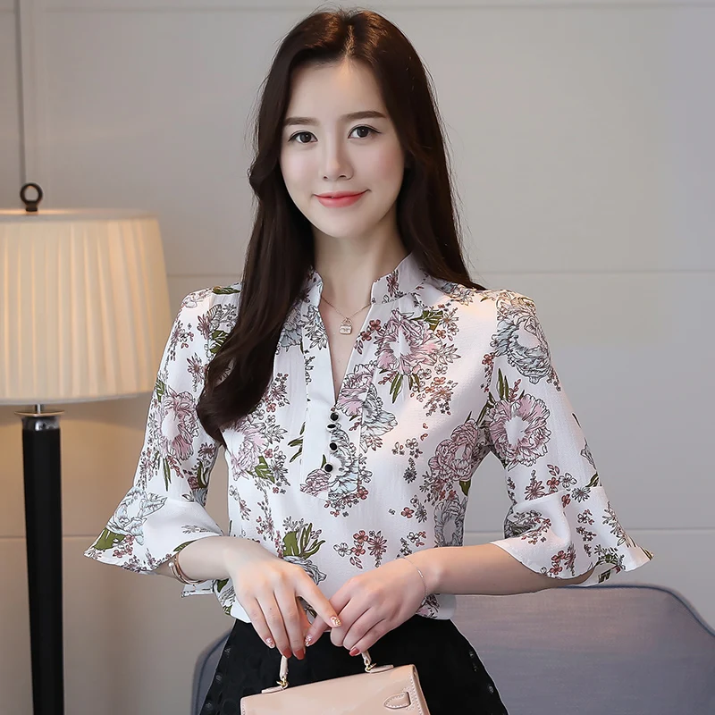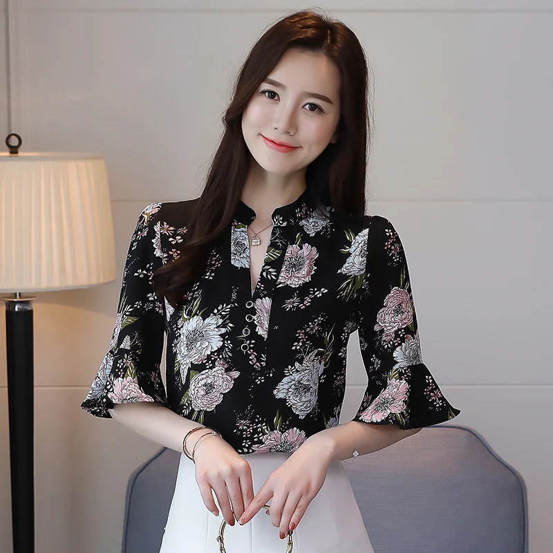Модные женские блузки 2019 плюс размер с принтом шифоновая блузка рубашка v-образный вырез офисная блузка рукав короткий летние женские рубашки 2889 50