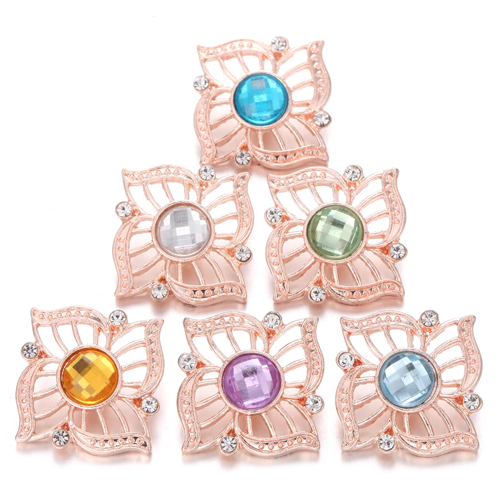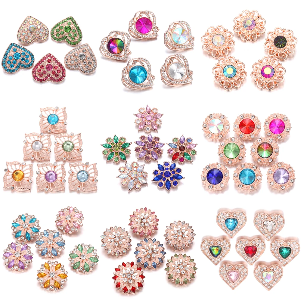 6 шт.лот, новейшие ювелирные изделия из розового золота, кристаллы, цветы, любовь, сердце, металлические кнопки 18 мм, подходят для DIY браслетов с кнопками