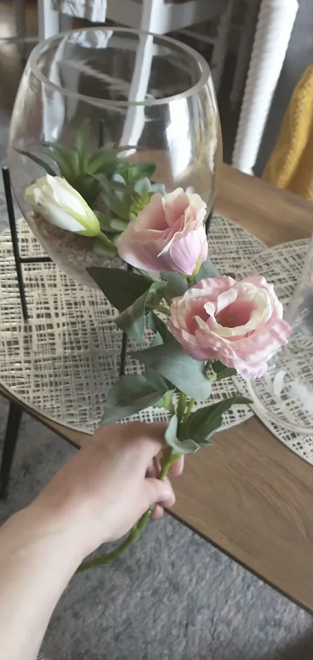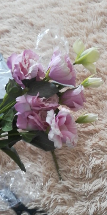 Отличные цветы! Абсолютно не пахнут пластиком, в пути, конечно, помялись, но я их смочила в воде, потом мокрыми отпарила - БОМБА (О_О)