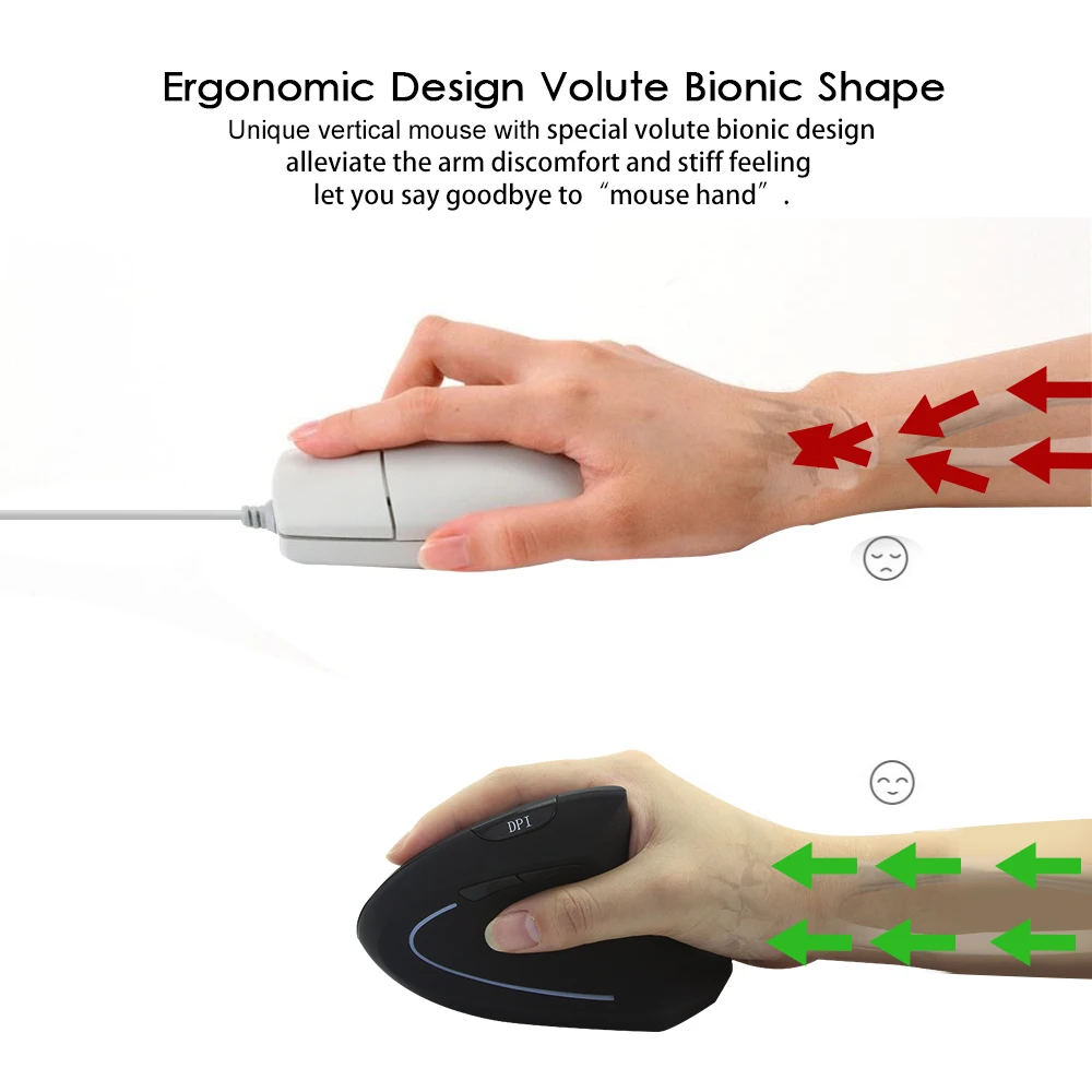 Беспроводная Вертикальная мышь CHYI, эргономичная bluetooth-мышь с подсветкой 1600DPI, оптическая мышь Mause с подставкой на запястье, коврик для ПК, ноутбука