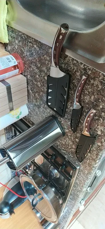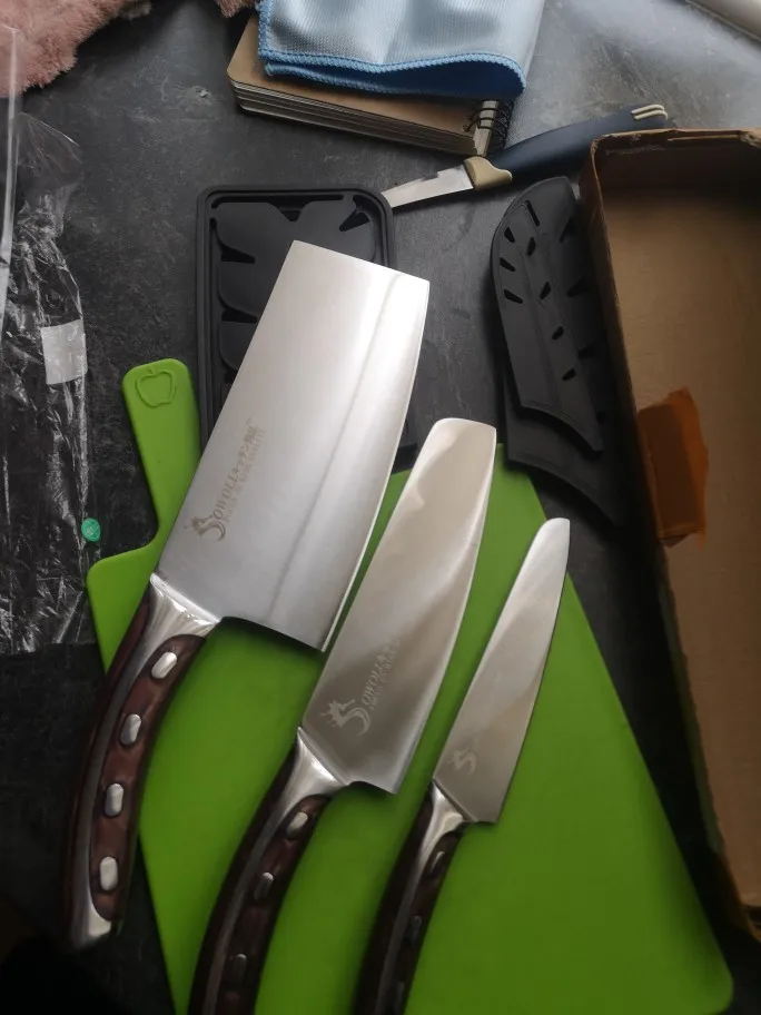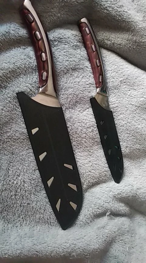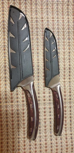 ножи хорошие, острые, лёгкие и удобные, с чехлами. НО! сняла 1☆ за долгую доставку 2 месяца. Продавец отправил товар почти через 1 месяц после заказа и моих периодических напоминаний +1 месяц в пути из Китая в Россию через Казахстан. Доставка до двери CDEK. Нужно дополнить отзыв через пару месяцев использования.