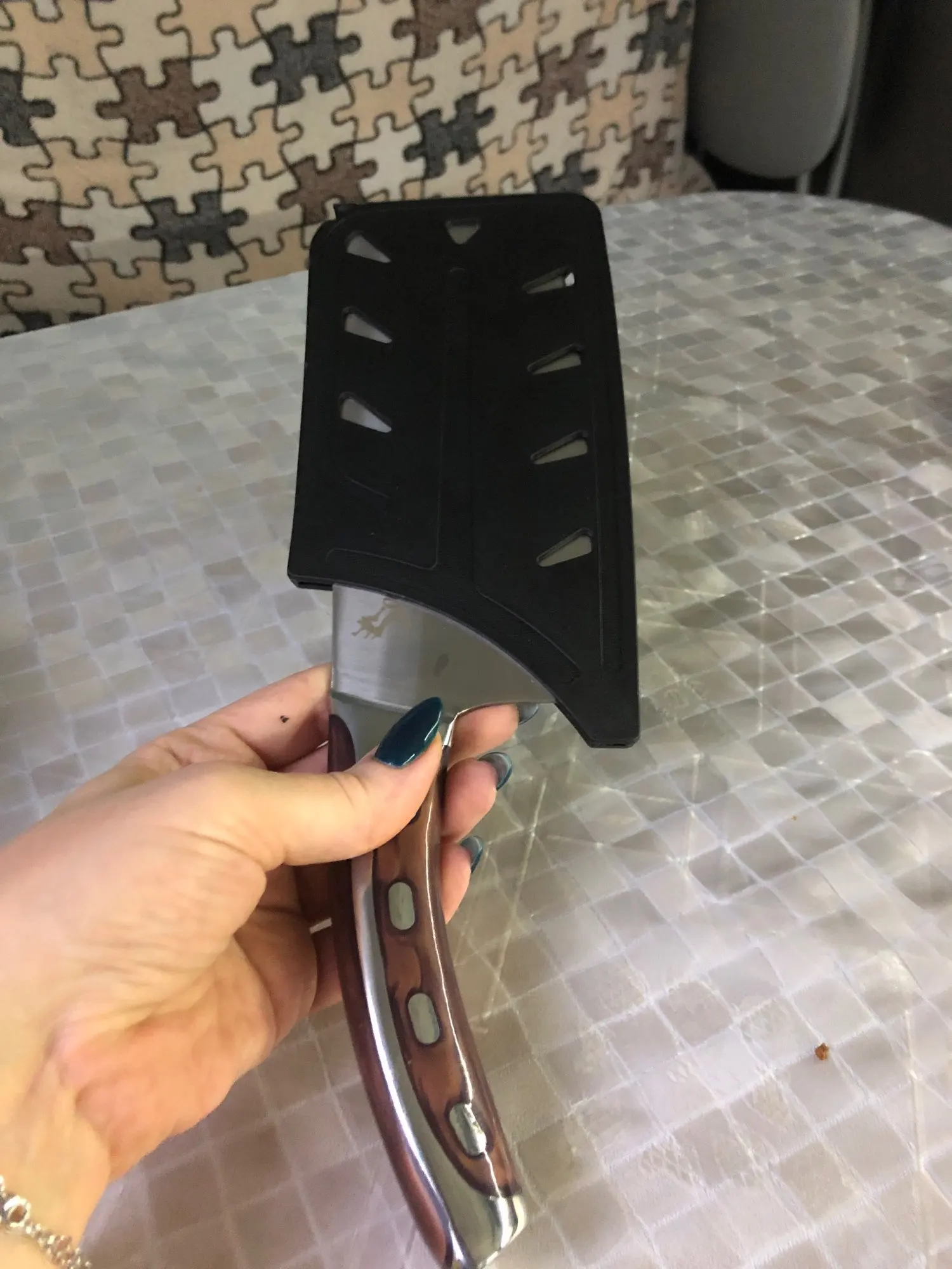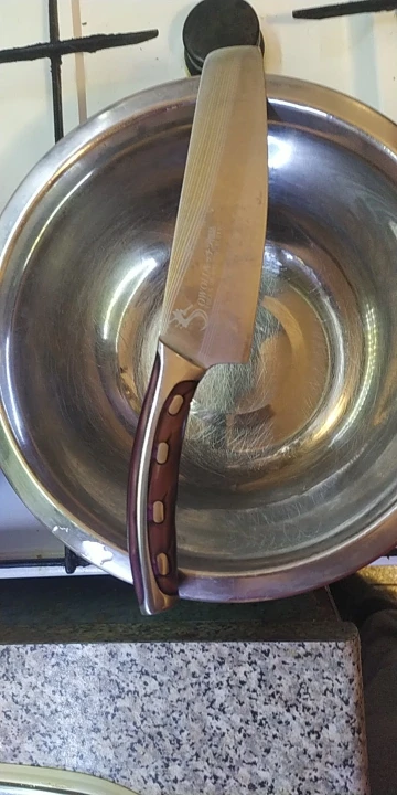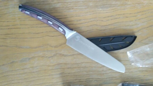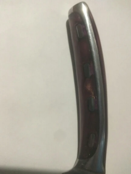 Нож хороший, очень острый, удобная форма лезвия. Чтобы разрезать мясо достаточно только коснутся. Спасибо продавцу за упаковку. Планируем заказать еще маленький. Покупайте смело.