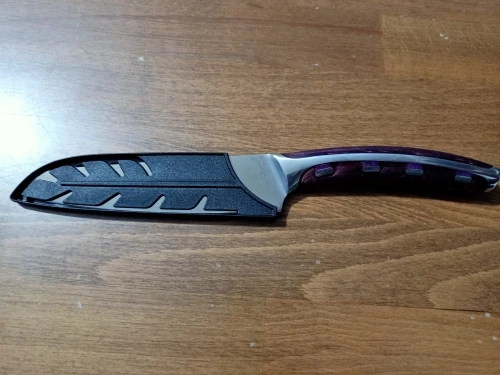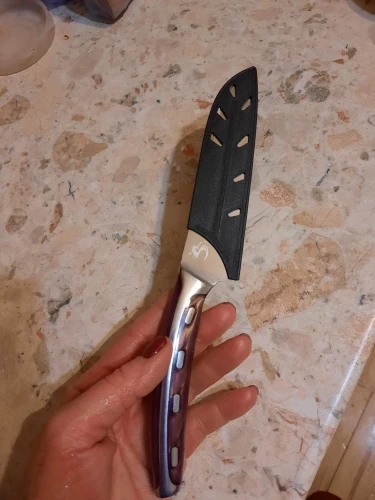 Отличный нож, давно такой хотела, очень острый, надеюсь будет удобно с ним работать. Доставка быстрая, был отлично упакован. Рекомендую. Большое спасибо продавцу.