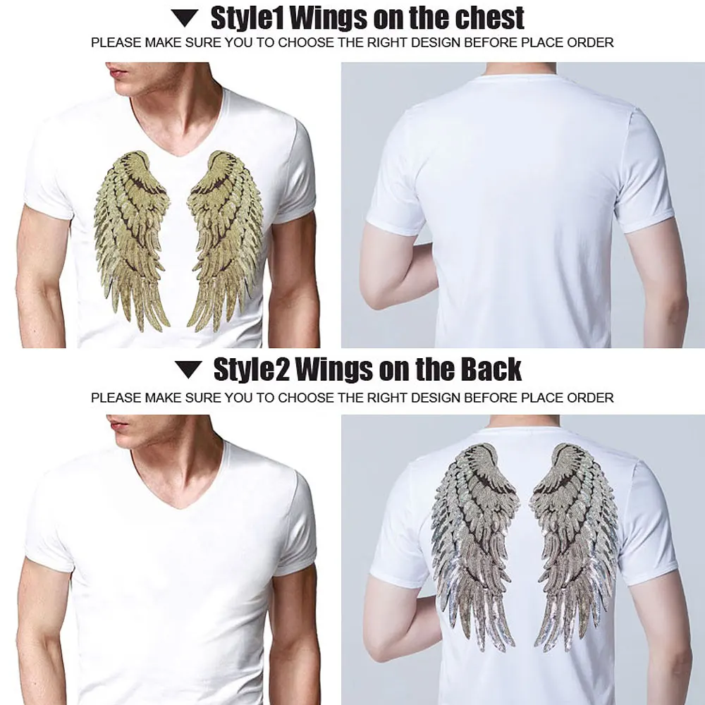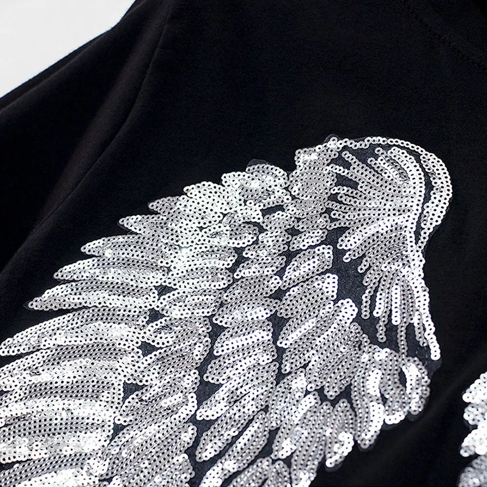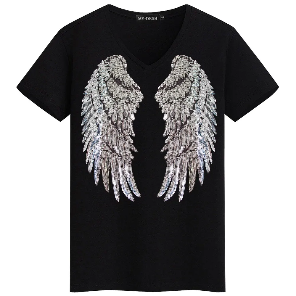 Новые модные женские футболки с блестками, повседневные летние мужские топы с крыльями ангела, унисекс, с вышивкой, с коротким рукавом, футболки с пайетками