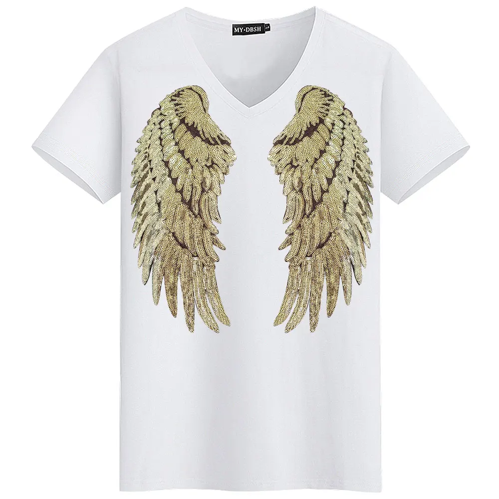 Новый стиль Харадзюку дизайн лето блесток унисекс футболки Повседневная мода Крылья Ангела топы вышивка короткий рукав тонкие футболки