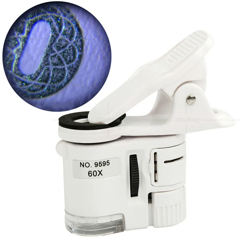 Увеличительные очки Xinxiang Microscop для камеры телефона, светодиодные 60X Ювелирные изделия, лупа для валюты, зажим, HD микроскоп, очки, лупа