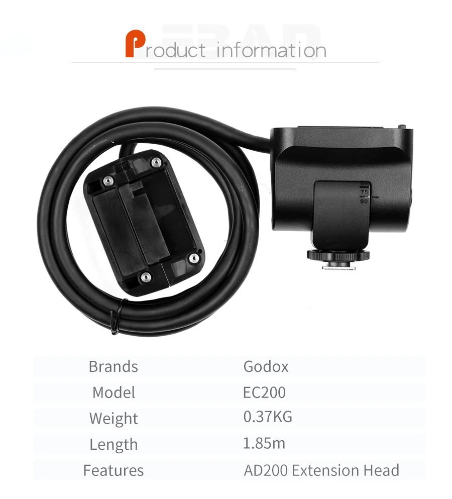 Удлинительная головка Godox EC200 AD200 с дистанционным разделением и кабелем 1,85 м, портативная лампа освещения для камеры для вспышки Godox AD200