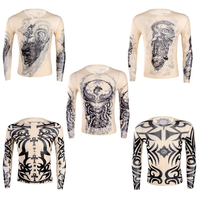 TiaoBug, мягкая футболка с круглым вырезом, прозрачная, с длинными рукавами, с имитацией татуировки, эластичная, сексуальная, мужской нарядный костюм для вечеринки