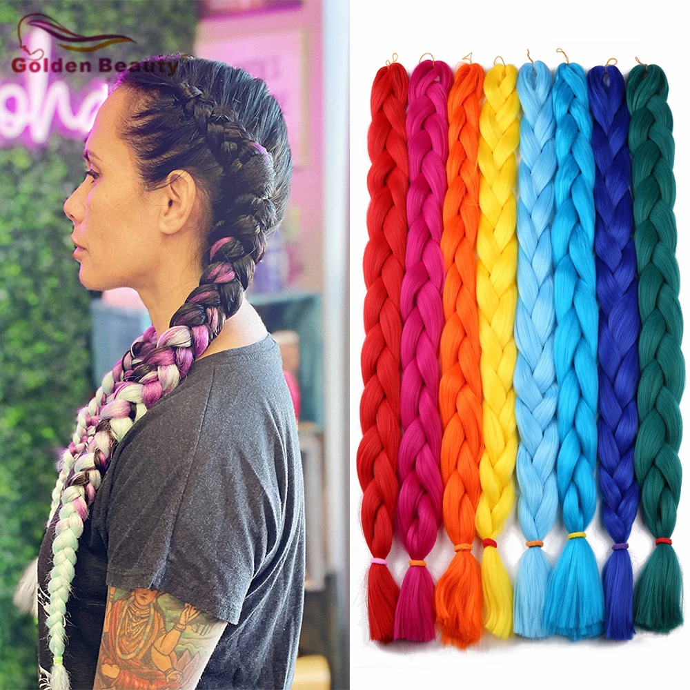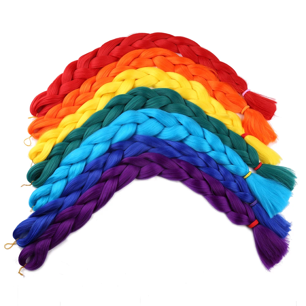 Косы Джамбо 41 дюйм, 165 г, искусственные синтетические плетеные волосы для кос, блонд, красный, желтый, синий, розовый, белый, серый, Радужный