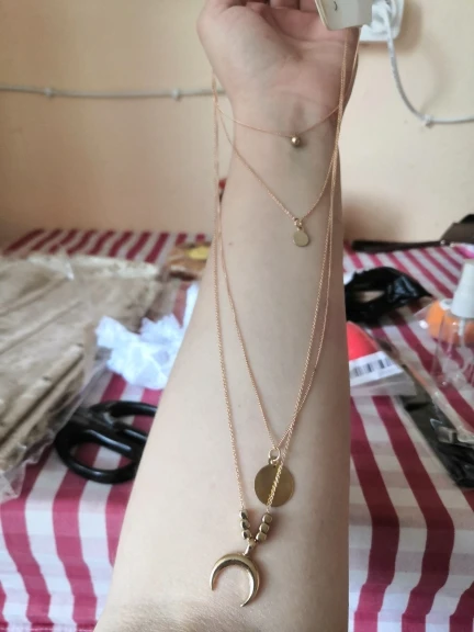 Ожерелье с круглой подвеской в форме рога для женщин и девушек, колье золотистого цвета в богемном стиле, многослойное металлическое ожерелье с полумесяцем, воротник, 6175