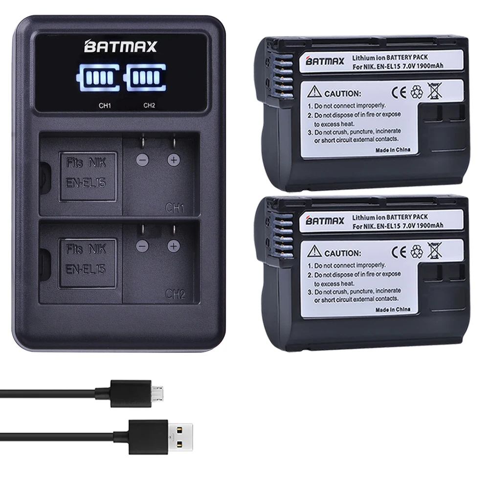 Аккумулятор Batmax EN-EL15 EN EL15 ENEL15, 2 шт., зарядное устройство с двумя USB-разъемами для Nikon DSLR D600, D610, D800, D800E, D810, D750, D7000, D7100 V1