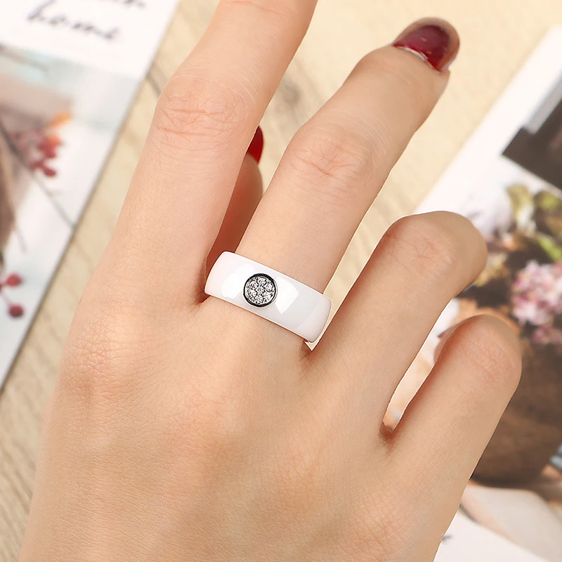 бижутерия для женщин 8 мм кольца черное керамическое женское кольцо Модные CZ Стразы керамические кольца мужские большие кристаллы свадебные женские рождественские ювелирные изделия 6-12 Размер
