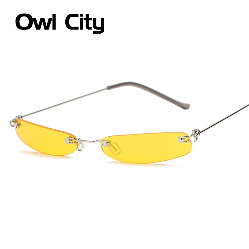 Солнцезащитные очки в стиле ретро Сова женские, винтажные маленькие узкие солнечные очки, прямоугольной формы, брендовые дизайнерские, без оправы