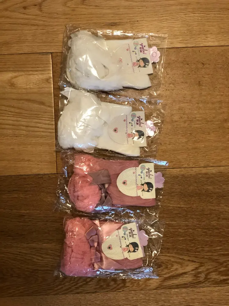 Посылка шла очень долго, максимальный срок, три месяца до Финляндии, защита покупателя кончились и посылка пришла. Уже спор открыла по возврату денег, и посылка пришла через день. Но немного разочарована, цвет не соответствует тому который заказывали. Белые и розовые, а прислали молочного цвета и темно розовые (как чайная роза) и размер большой. Получается размеры от 0 до 2 лет подходить на 2 года, дочке 9 месяцев и нам они очень большие. Рюша не такая красивая и пушистая как на фото. С продавцом не общалась и посылка не отслеживалась.