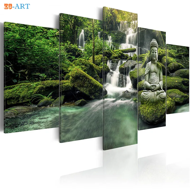 Настенная живопись, статуя Будды, картины для гостиной, 5 панелей, натуральные настенные картины, Современное украшение, домашний декор