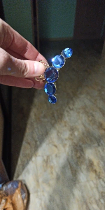Продавец отправил быстро товар! Заколка пришла с браком! Один кристалл отвалился, все остальные приклеены криво и все в клею! Носить не буду.