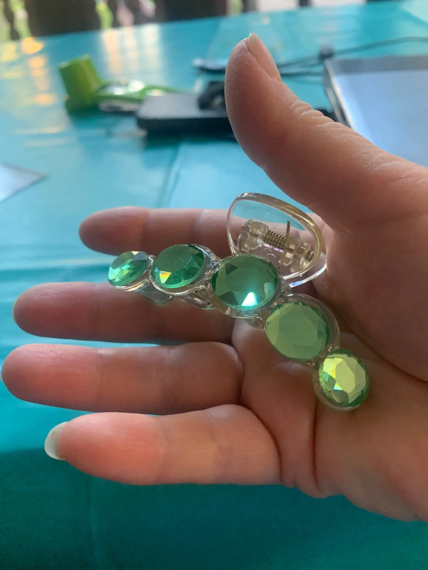 оч красивая заколкаи цвет не сильно яркий скорее приглушенный зеленый
