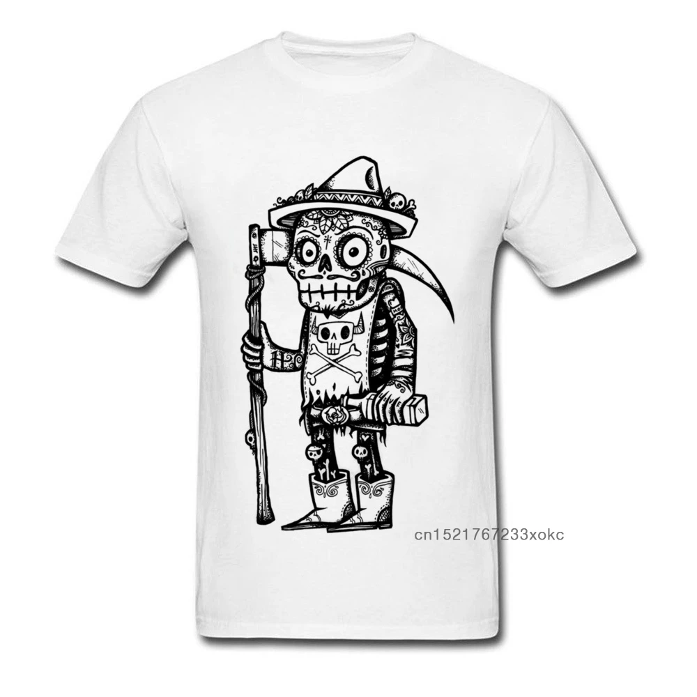 Мужская футболка с черепом, белая хлопковая футболка в стиле стимпанк с принтом черепа, прикольная футболка на день смерти