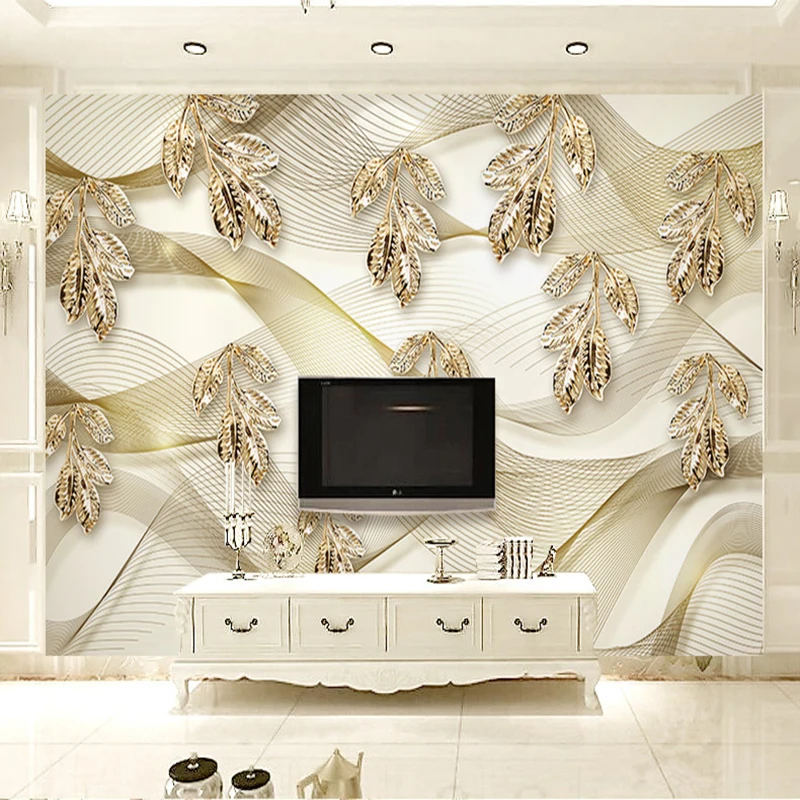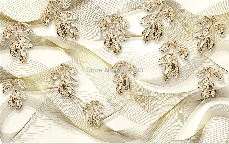 Пользовательская настенная ткань Европейский стиль 3D стерео Золотой лист фото фрески обои для гостиной ТВ фон настенная живопись Домашний декор