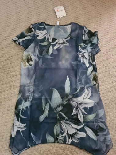 Быстрая доставка. 4xl подошел на 52 рос. тонкий шифон. Немного просвечивает. Смотрится хорошо.