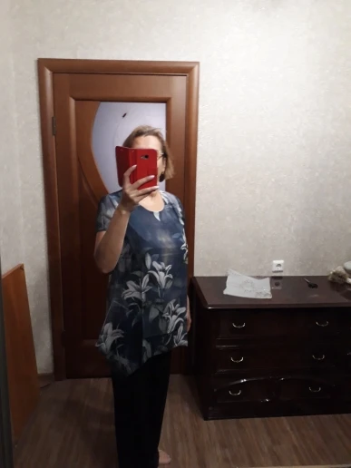 Супер. Очень понравилась. Правда расцветка сероватая, не такая яркая как на картинке, но всё-равно красиво. На ОГ 103 заказала XXL, села отлично, прямо комфортно, нигде не жмёт не тянет. В передней части туники есть подкладка. Товар получила в течение 3-х недель, считаю что достаточно быстро. Спасибо продавцу.