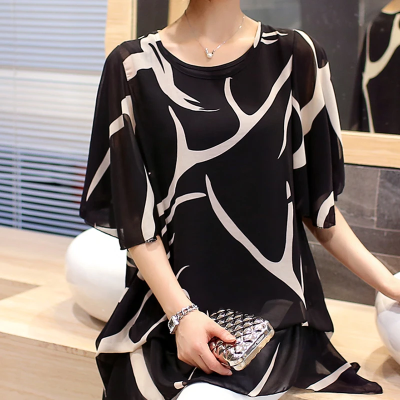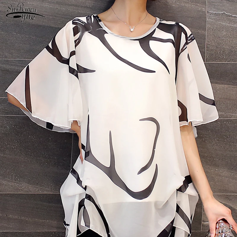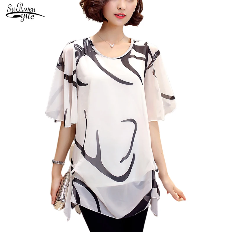 Новая мода плюс Размеры 4XL женская шифоновая блузка с низким вырезом, футболка с короткими рукавами летняя одежда, топы с рисунком для девочек, шифоновая блузка, рубашка, одежда, блузки и рубашки, 60A 30