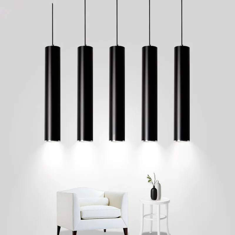 Современный подвесной светильник с длинной трубкой, черный светодиодный светильник, освещение для островка, бара, магазина, комнаты, кухни, осветительный прибор