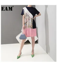 EAM Женская Черная клетчатая блузка большого размера, новая свободная рубашка с вырезом лодочкой и рукавом три четверти, модная весенне-осенняя 2022 jf9381
