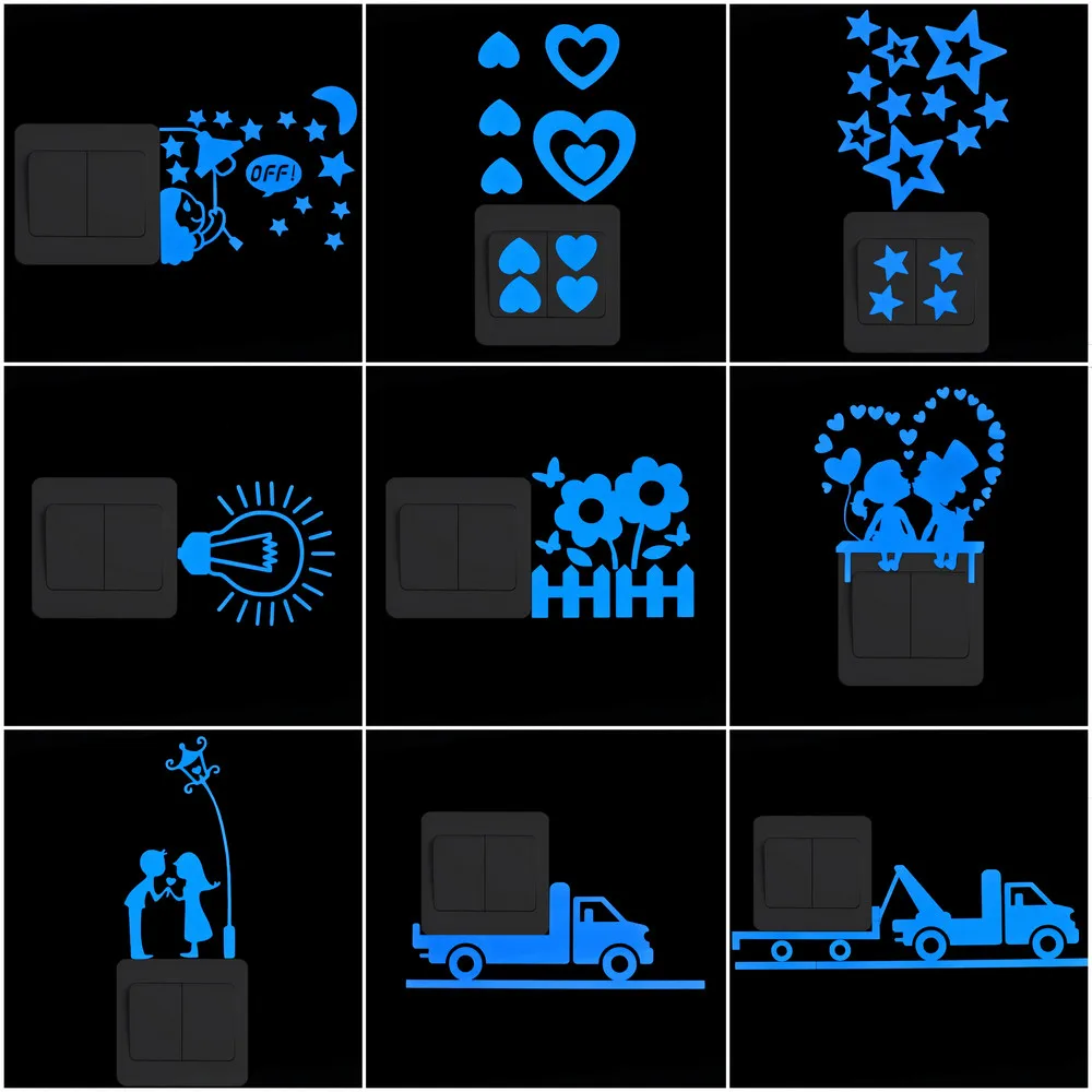 Наклейка на выключатель света, светящаяся Наклейка на стену, мультяшная наклейка светится в темноте, наклейка для украшения детской комнаты, домашний декор, кошка, фея