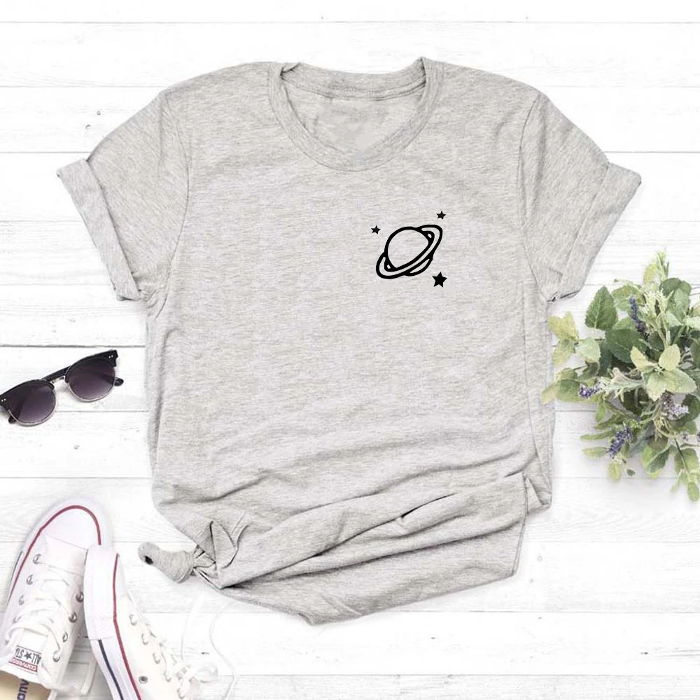 Футболка женская хлопковая с принтом, топ с графическим принтом, с карманами, в космическом стиле, для подростков, на лето