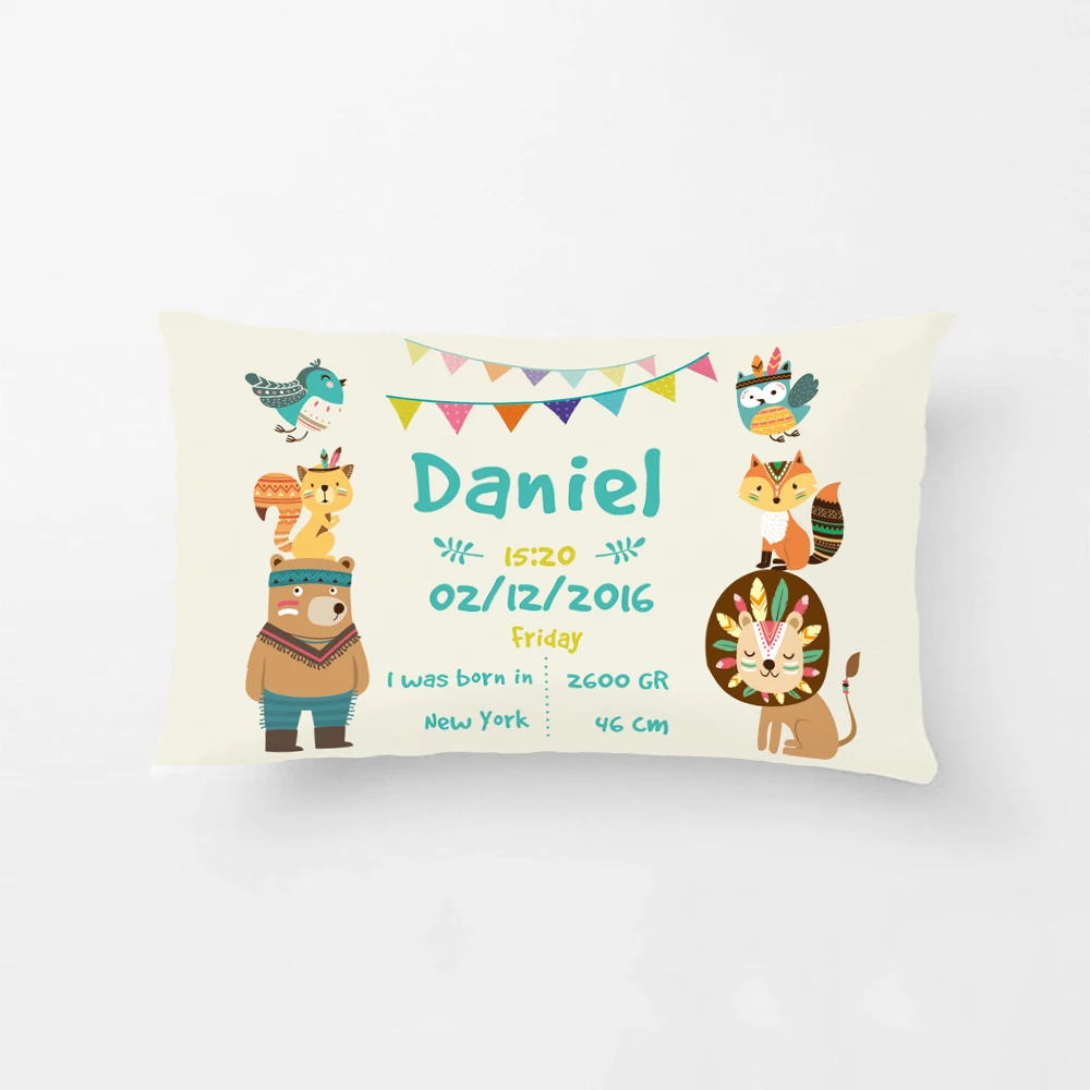 Подгонянный с детскими данными о рождении голубой Чехол на подушку тематический рисунок лесных животных Наволочка милый персонализированный подарок для ребенка от Lvsure