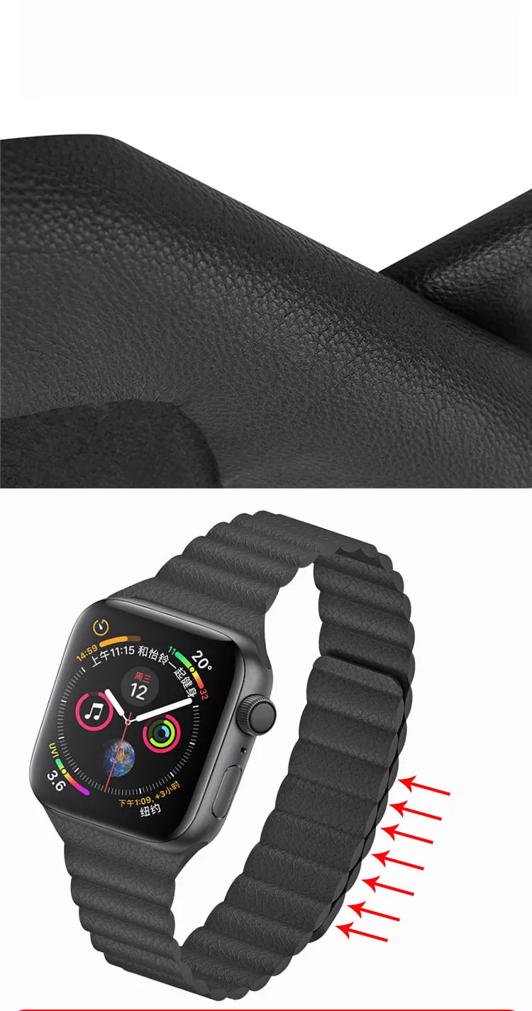 Ремешок для наручных часов Apple Watch Series 5, 4, кожаный, с магнитной застежкой, 4044 мм