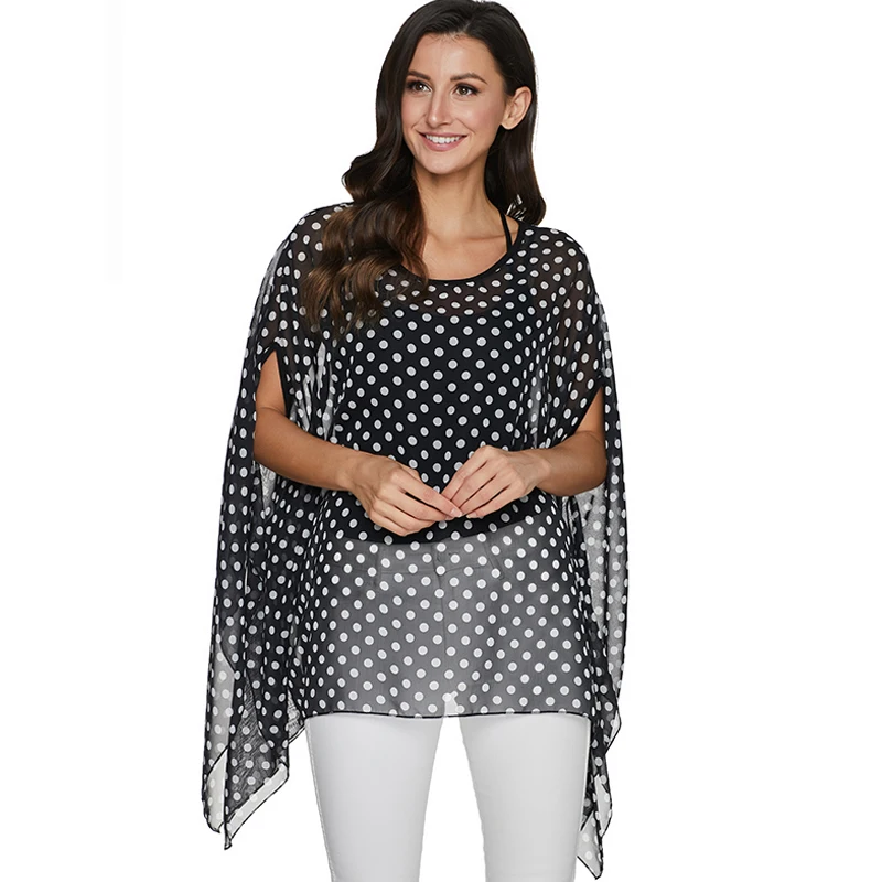 Женские топы и блузки BHflutter, повседневные Летние черные шифонов...