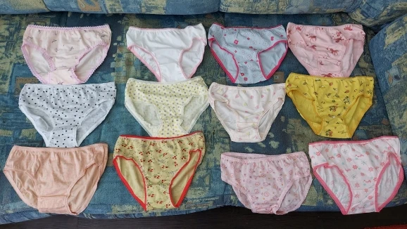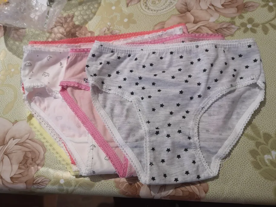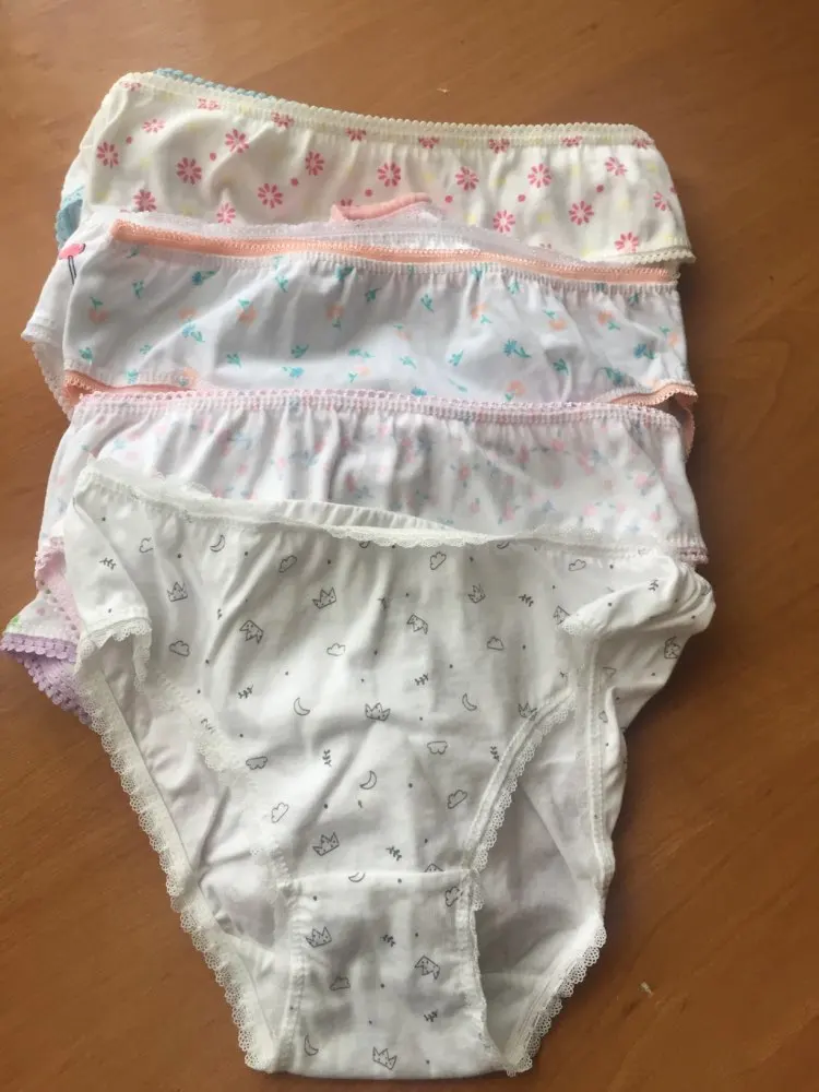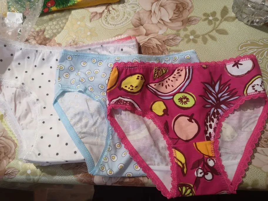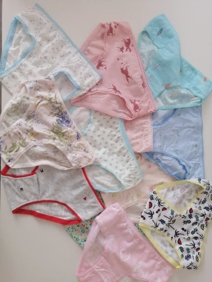 Трусики заказываю второй раз, на девочку 4,5 весом 20 кг взяла размер 7/8 лет, потому что не люблю, когда сильно в обтяг и после стирки подсаживаются немного. сидят нормально, небольшие. По качеству: из 12 наверное одни не похожи на хлопок, радуют разнообразные расцветки, при первом надевании не рвутся. Вцелом, заказом довольна, на год идеальный вариант