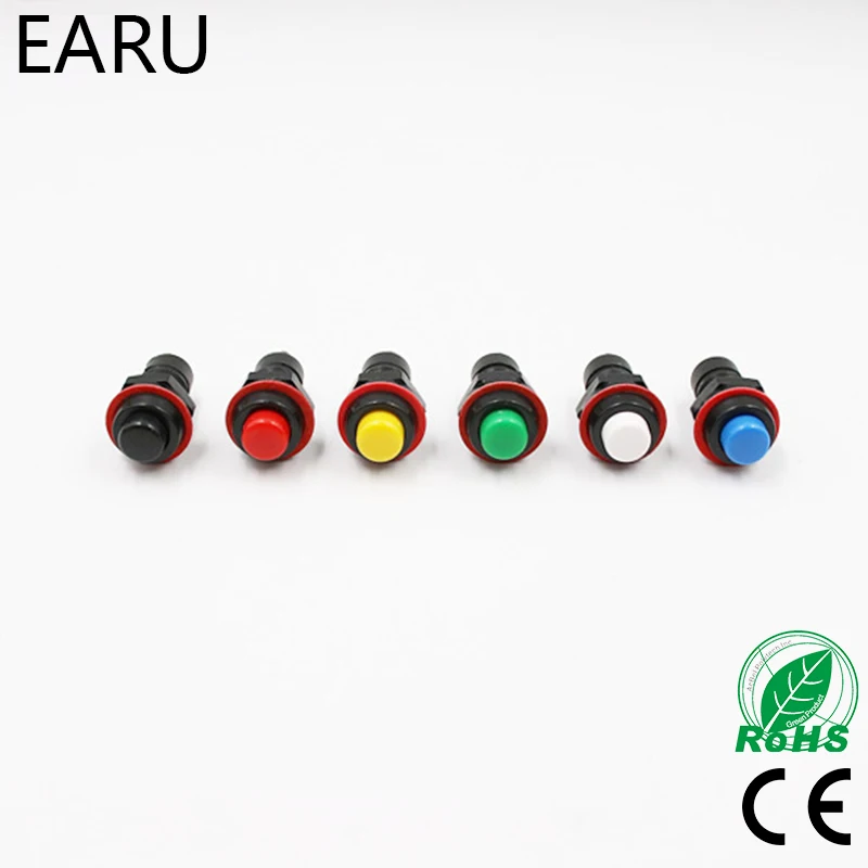 6 шт., самосброс 10 мм, моментальная перезагрузка, кнопка переключения питания, белый, черный, синий, красный, желтый, зеленый, дверной звонок