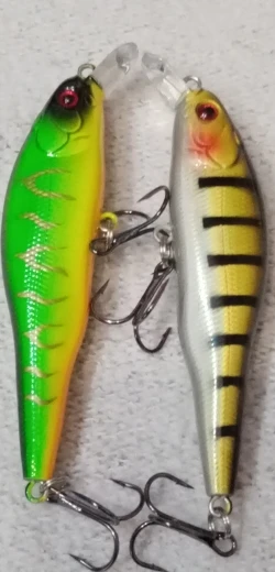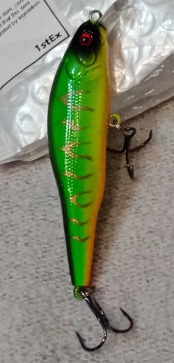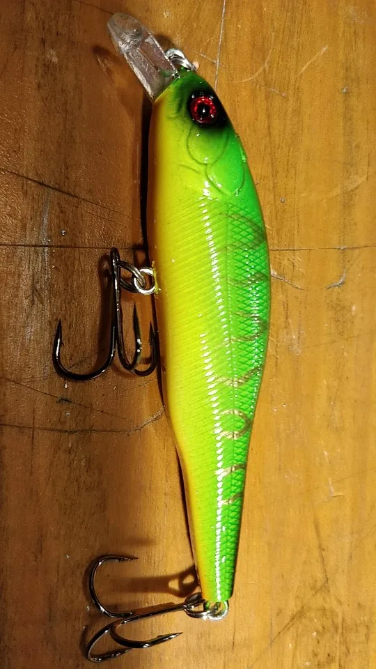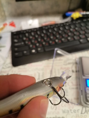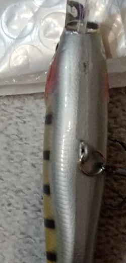 Хороший воблер.По краске претензий нет,крючки острые.При рывках рыскает в стороны и красиво блестит боками.Всплывает не быстро.Буду брать ещё в других цветах