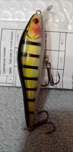 Доставка 3 недели,трек отслеживался,получение на почте.Отличный воблер,сделан качественно,крючки острые,петли клеить не надо.В следующем году будем разлавливать. Товар и продавца рекомендую.