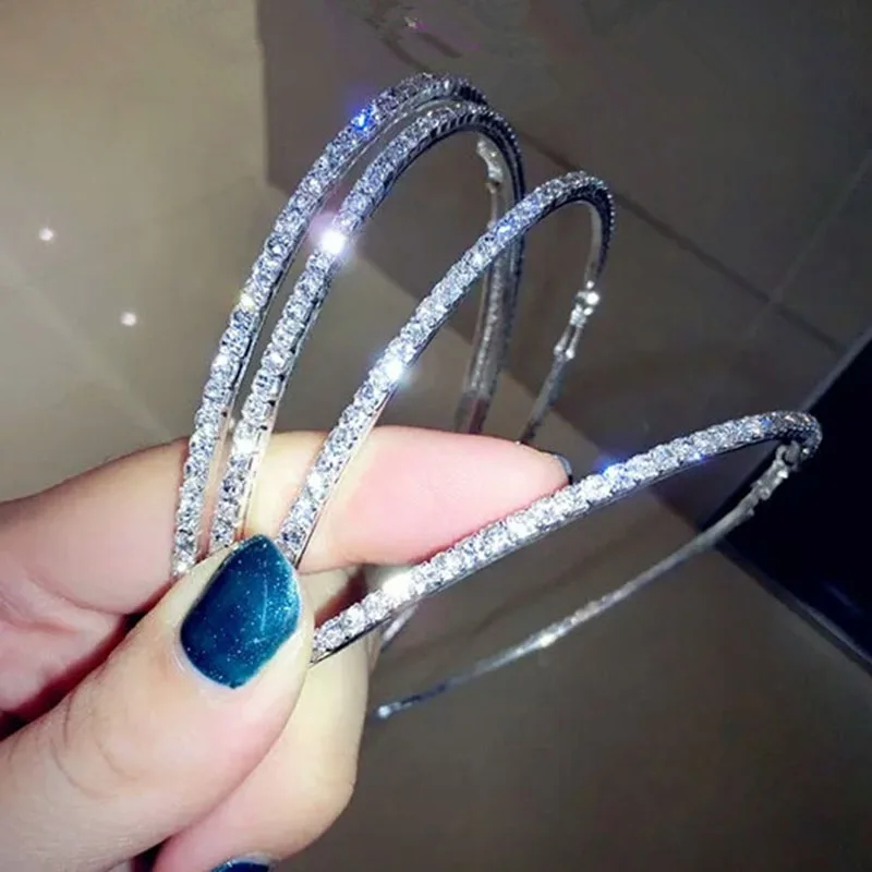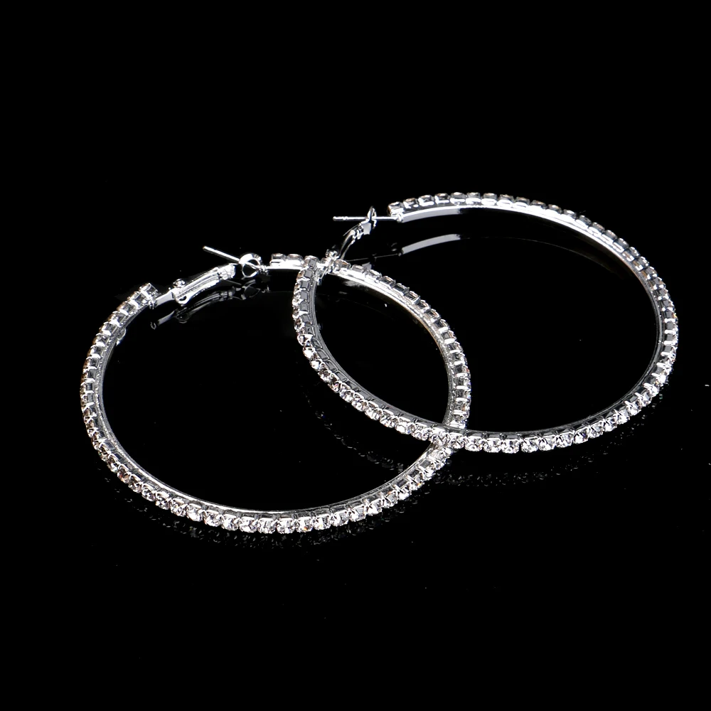 Модные большие серьги-кольца со стразами, стразы, серебряного цвета, круглые серьги-кольца для женщин, ювелирные изделия, серьги в виде больших кругов