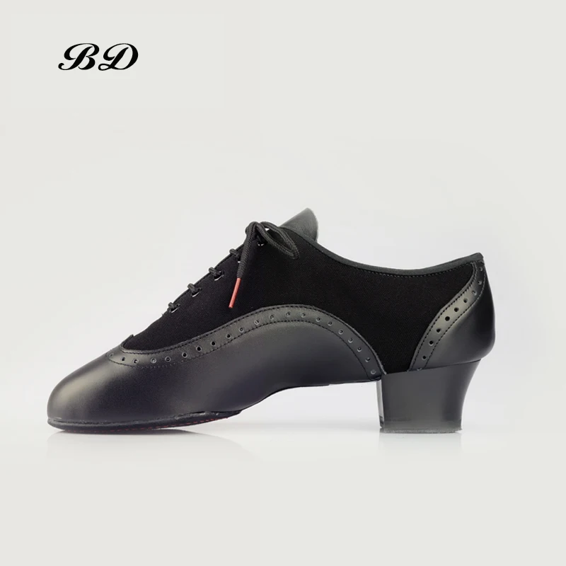 Мужские туфли для латиноамериканских танцев BD, черные туфли из воловьей и ткани Оксфорд для джазовых танцев на высоком каблуке высотой 458 см, 4,5