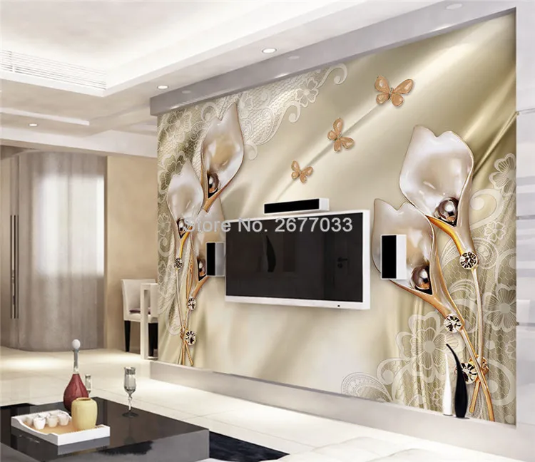 Пользовательские фрески 3D обои стерео шампанское тюльпан ювелирные изделия настенная ткань гостиная отель роскошный фон настенная живопись обои