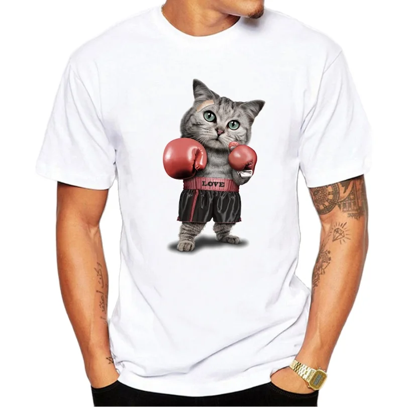 Футболка BINYUXD мужская с круглым вырезом, хлопок, короткий рукав, прекрасный боксерский Кот, смешная футболка с животными, подарок на день рождения