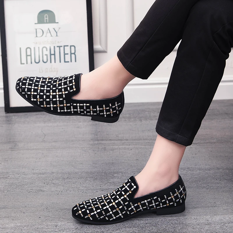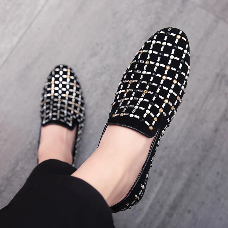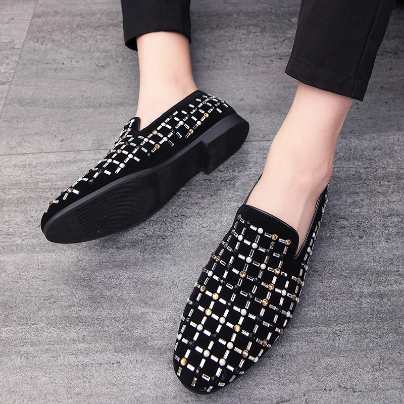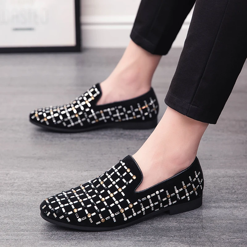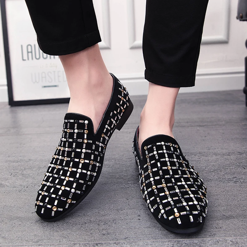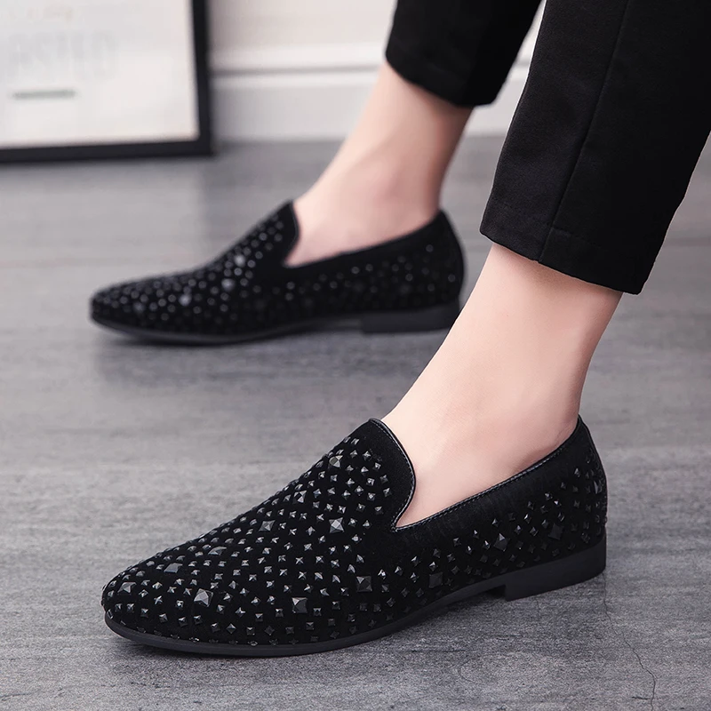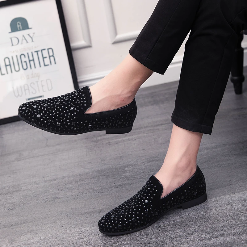 Брендовые благородные черные Мужские модельные туфли со стразами; Роскошные бархатные Мокасины с кристаллами; Мужские лоферы; Офисная деловая мужская обувь