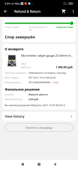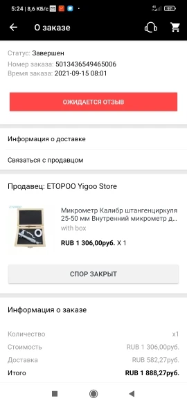 Доставка быстрая. Микрометр в деревянном футляре, ключ и кольцо-калибр в комплекте. 53 сотки привирает, шкала сдвинута на 1 оборот. Придется настраивать. Внешне- не фонтан. С совковым микрометром никакого сравнения. Может потому, что дешевый. Но других не нашел.